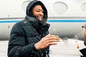 浓眉来到了球队主场,参观了更衣室,进行了定妆照拍摄。从照片中可以看到,浓眉的手上依然还带着护具。