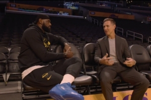 在比赛进行期间,转播商Prime播出了本场解说嘉宾纳什在赛前对詹姆斯的采访片段。