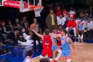 体育资讯2月14日讯 NBA全明星新秀赛决赛,卡特队25-24险胜安东尼队,比赛中前CBA球员、解说嘉宾曾令旭谈到了卡特队布泽利斯用脚步单打克林根的一个进球。