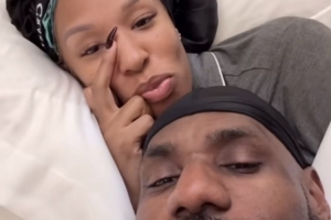 詹姆斯晒出他和妻子躺在床上的自拍合影,并评论道:“🤣🤣🤣🤣🤣🤣🤣🤣🤣🤣情人节快乐!笑死我了🤎”