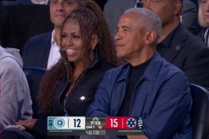 GIF-奥巴马现身洛杉矶全明星,与布克拥抱致意