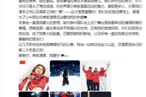 冬奥会一直是我最大的梦想。能代表中国队站上这个舞台是我最幸运和值得骄傲的事情。感谢祖国一直在身后给予我强大的支持。还有我的爸爸妈妈,你们在现场为我加油,给了我更大的能量。还要感谢我的教练、以及所有一直在我身边支持我、爱着我的朋友们!