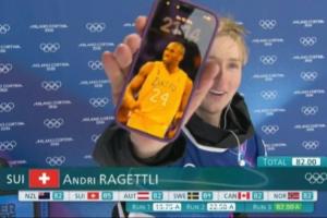 赛后,拉格特利面对着直播镜头,晒出了自己的手机封面,也是自己的偶像,已故篮球运动员科比·布莱恩特。