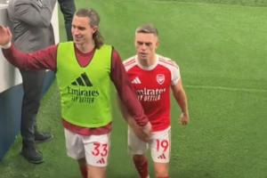 北伦敦德比阿森纳客场4-1取胜,赛后有球迷在球员通道口拍摄到了一些有趣的画面。