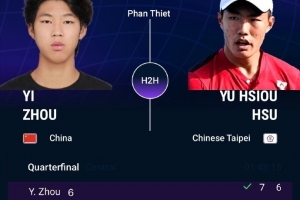 体育资讯1月30日讯 ATP挑战赛籓切CH50男单四分之一决赛,6号种子周意7-6(4)、6-3击败4号种子许育修,成功晋级四强。