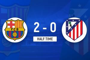 巴萨总比分连追2球!拉菲尼亚主罚点球一蹴而就,巴萨2-0马竞!总比分巴萨2-4马竞!↓