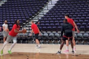 GIF-混音队训练时给杨瀚森跑战术