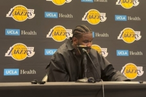 体育资讯3月11日讯 NBA常规赛,湖人120-106击败森林狼,赛后艾顿参加新闻发布会。