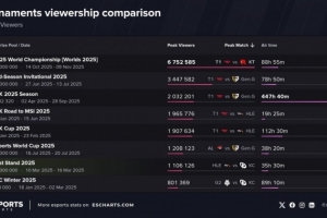 体育资讯3月11日讯 据外网数据统计,先锋赛入选2025年最受关注的英雄联盟赛事名单,首届赛事吸引了110万观众。