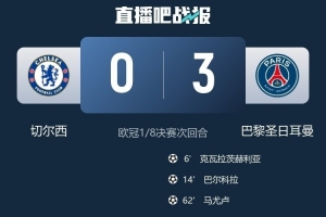 体育资讯3月18日讯 欧冠1/8决赛次回合,切尔西主场0-3不敌巴黎圣日耳曼,总比分2-8不敌对手,无缘八强。