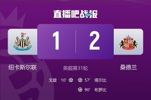 体育资讯3月22日讯 英超第31轮“泰恩-威尔德比”,纽卡斯尔主场1-2被桑德兰逆转。戈登首开记录,塔尔比扳平,布罗比上演绝杀。