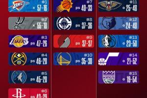 今日的NBA常规赛全部结束,让我们继续一起来关注最新排名: