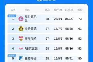 体育资讯04月04日讯 德甲第28轮,拜仁3-2绝杀弗赖堡,先赛12分领跑德甲。位居第二的多特稍后对阵第三斯图加特。