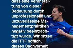 公开信中明确指出,赛事运营方未履行对参赛选手的各项承诺义务,部分选手分文未得,高规格赛事因运营方的不专业操作蒙尘,恳请国际乒联介入调查,避免此类事件再度发生。选手们表示,过去13个月间,运营方屡次承诺付款并定下新期限,但始终未能兑现,这一行为已被选手内部定性为“诈骗”。