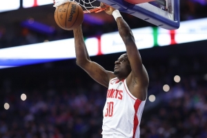 稀客啊!火箭官方晒赢球海报:卡佩拉高举手臂登上封面